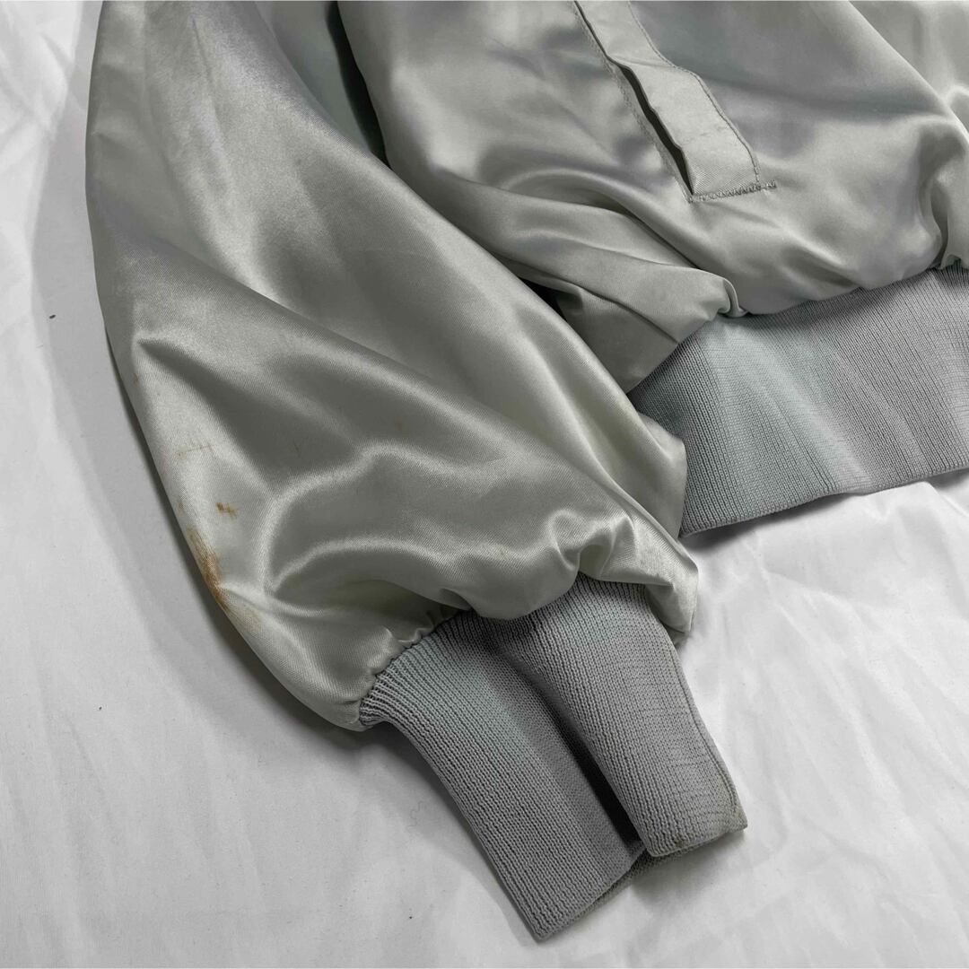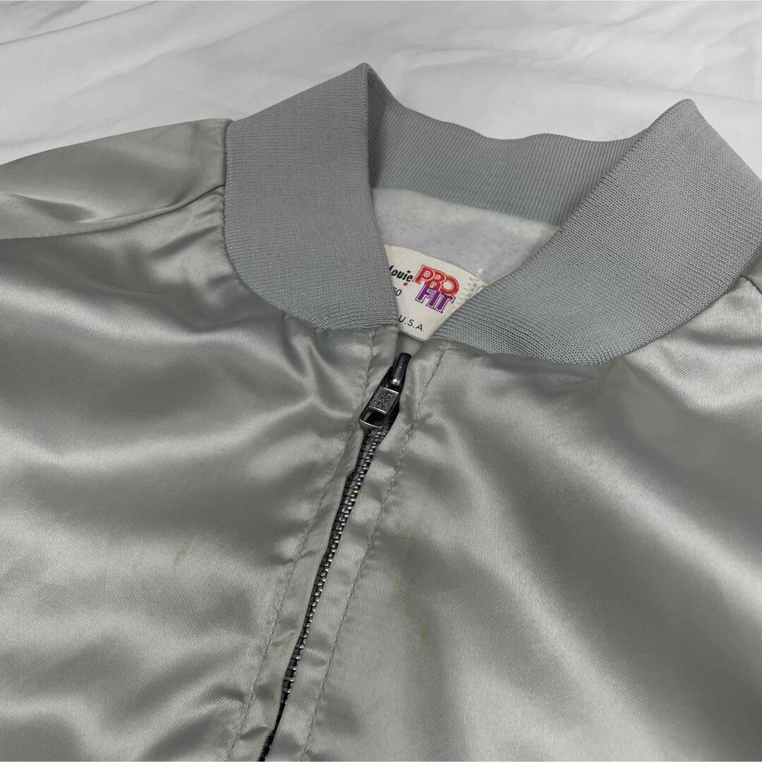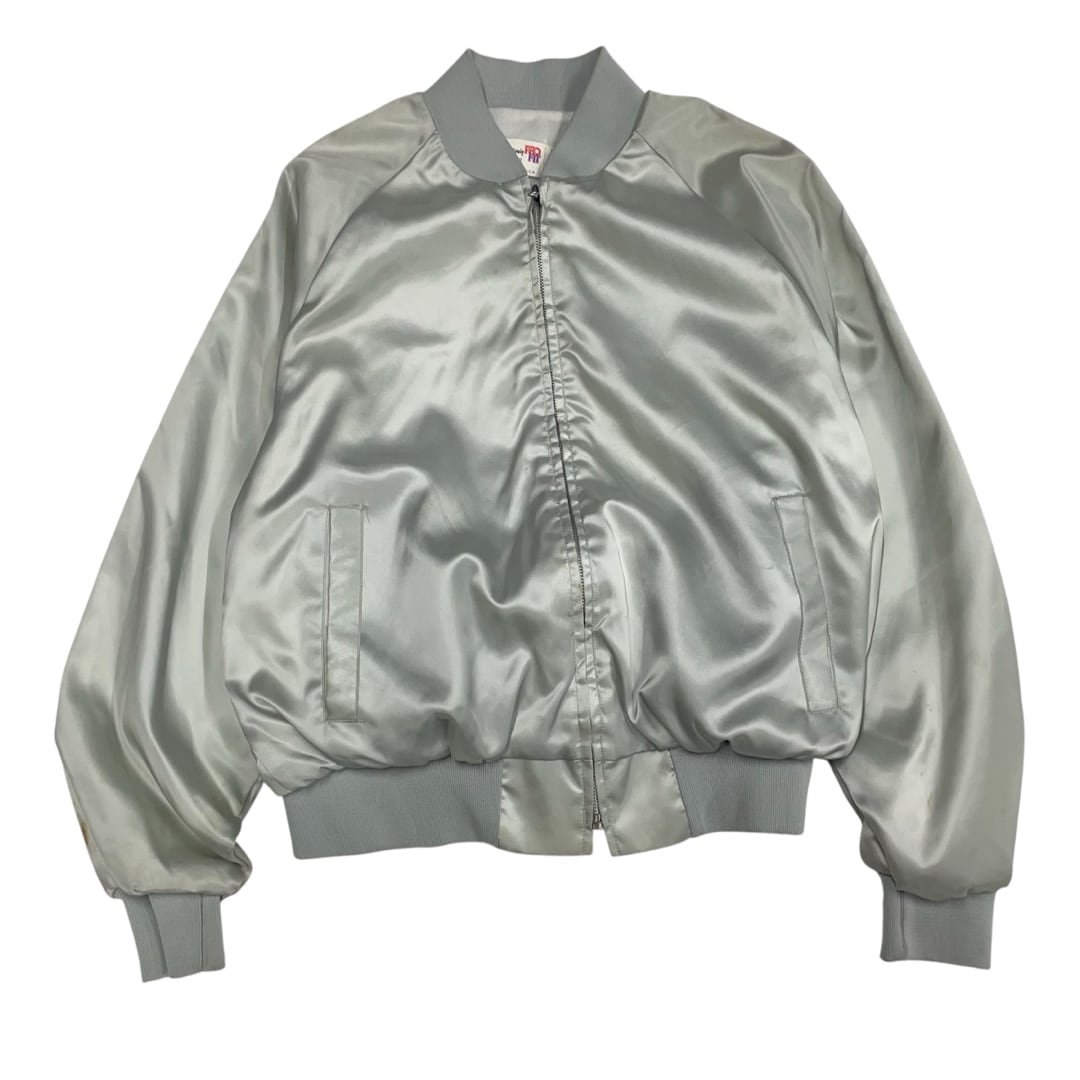 【USA製 XL】80s サテンジャケット レーシング グラフィック シルバー