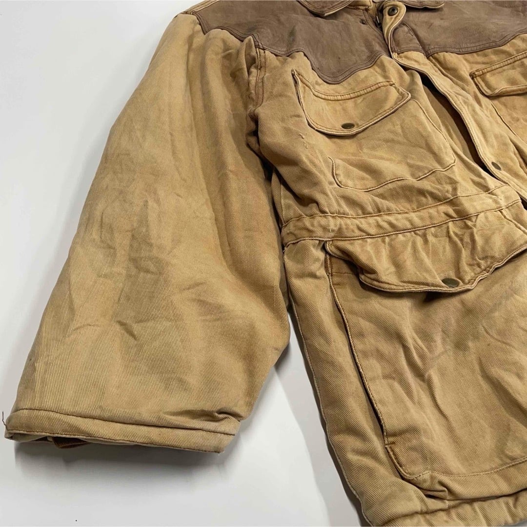 状態は写真をご確認ください。レザー部分に経年のシミ・スレ、ボディ全体に使用感があります。古着らしい味わいを楽しんでいただける一着です。