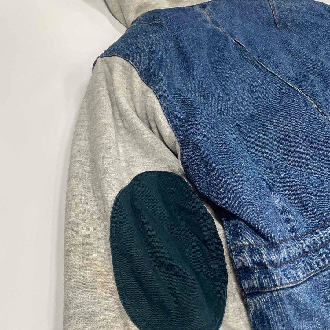 90s デニム×スウェット切替 フード付きジャケット メンズM
