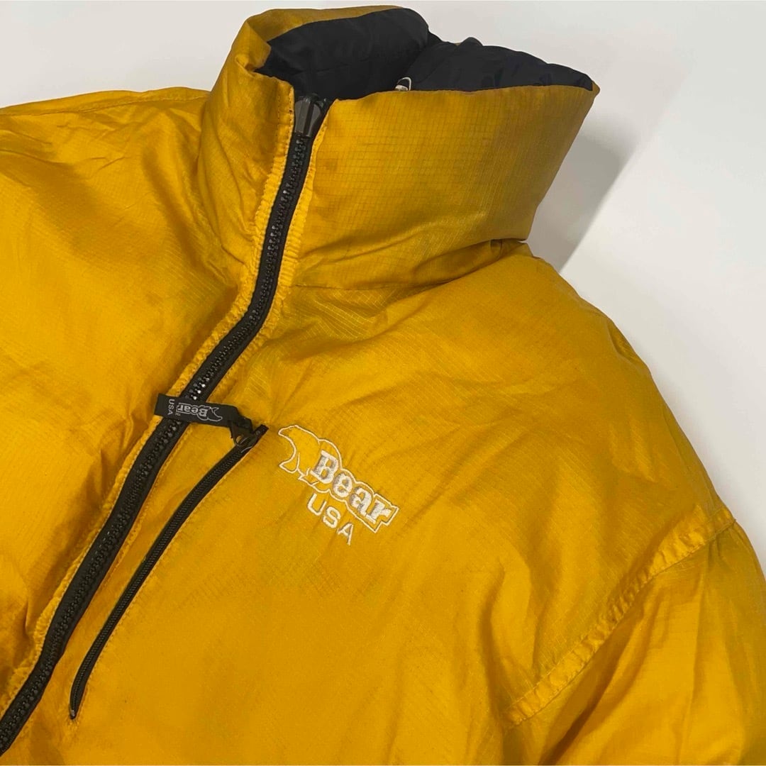 Bear USA リバーシブル ダウンジャケット ブラック×イエロー 90s ビッグシルエット