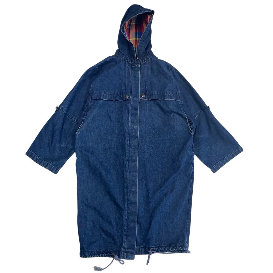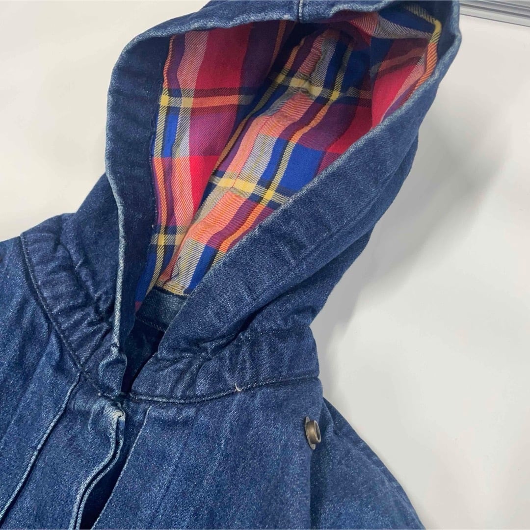 MU & CO デニム フード付きロングコート チェックライナー付き