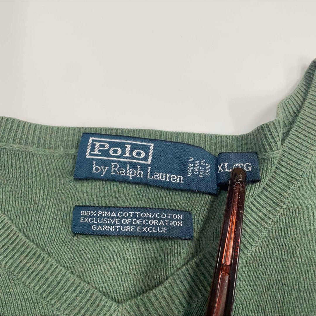 Polo by Ralph Lauren ピマコットン Vネックニット グリーン XL