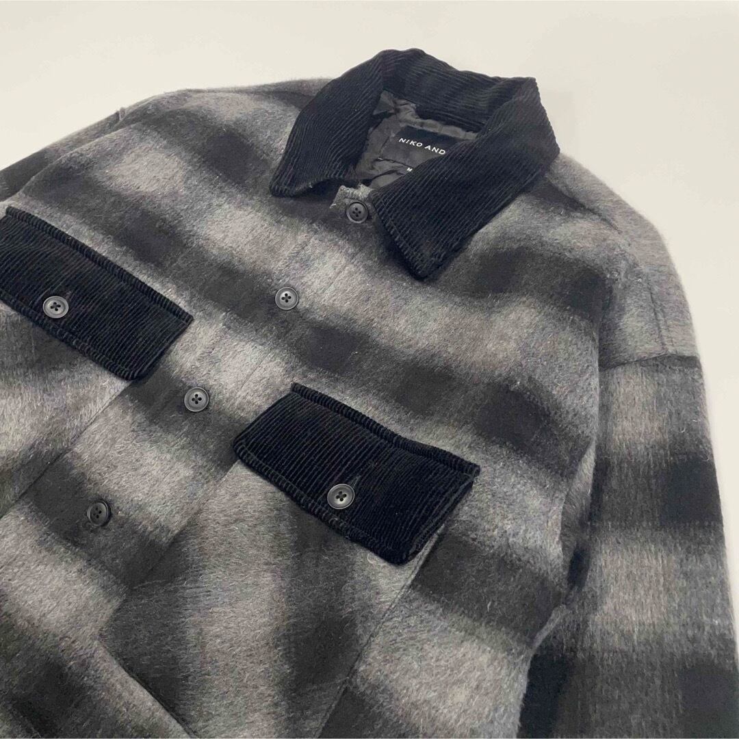 NIKO AND…(ニコアンド) チェック柄 中綿シャツジャケット 黒 メンズM