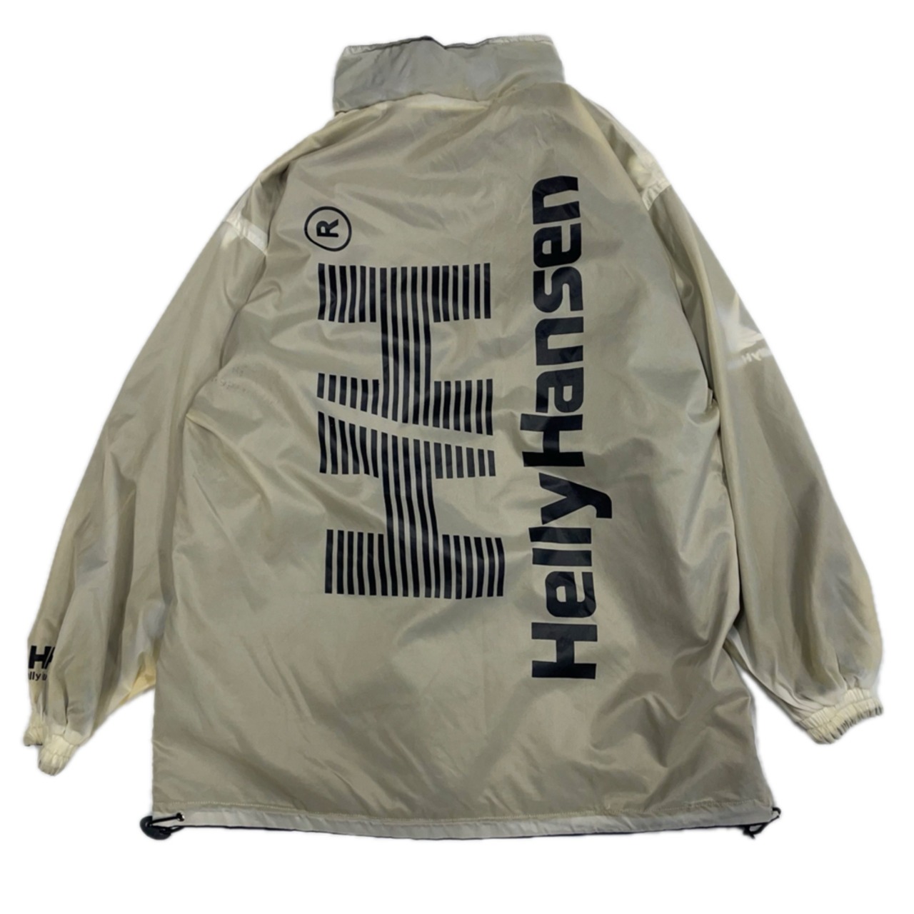 ・裏面:アイボリー系のナイロン地にビッグロゴデザイン