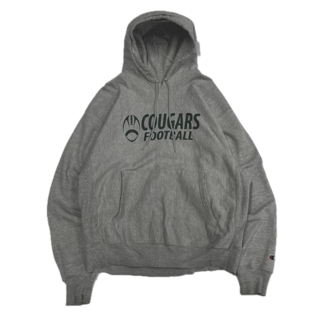 Champion チャンピオン プレミアムリバースウィーブ COUGARS FOOTBALL プリント パーカー グレー