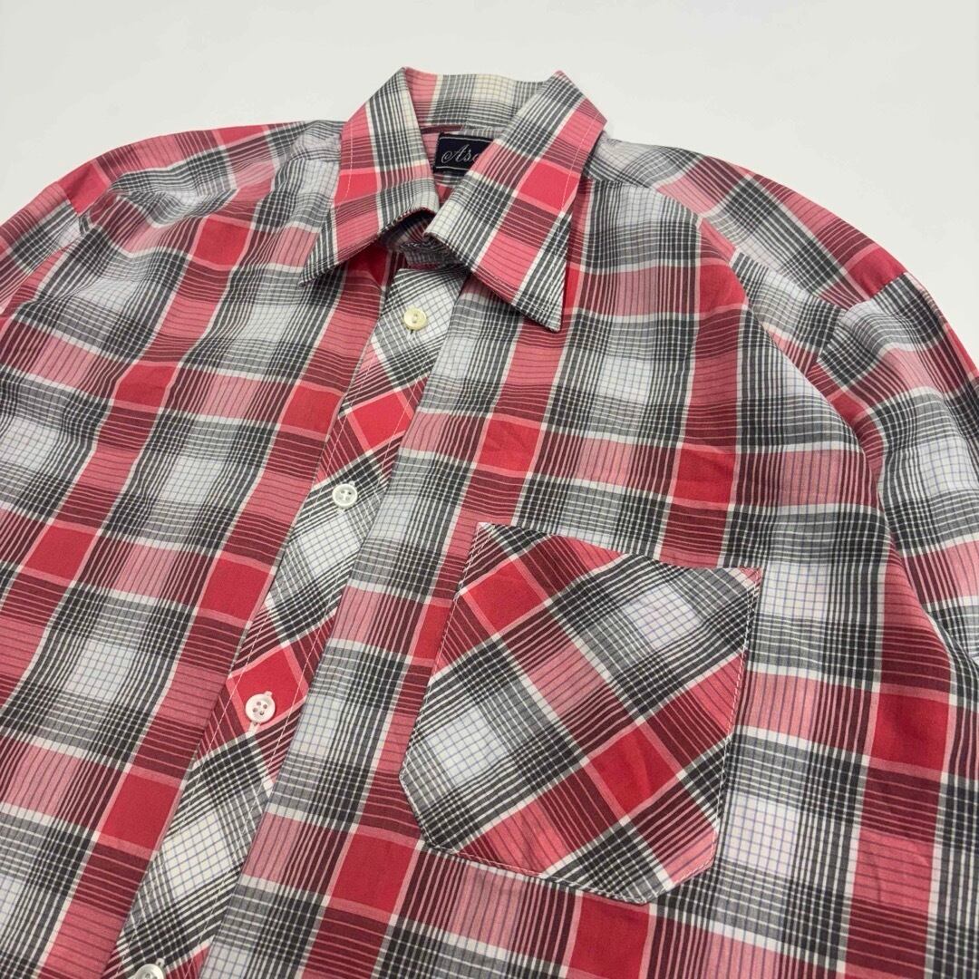 Ascot 00s チェック柄 長袖シャツ レッド×グレー メンズL