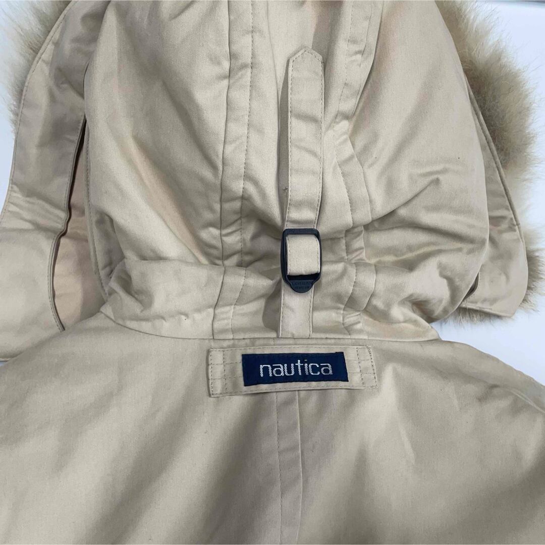 NAUTICA 中綿ジャケット フード付き ベージュ × ネイビー切替 裏地チェック