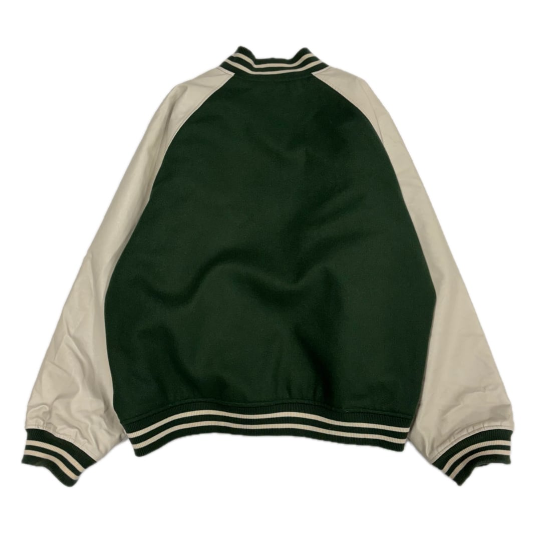 ・深いフォレストグリーン×アイボリー袖の王道スタジャンデザイン