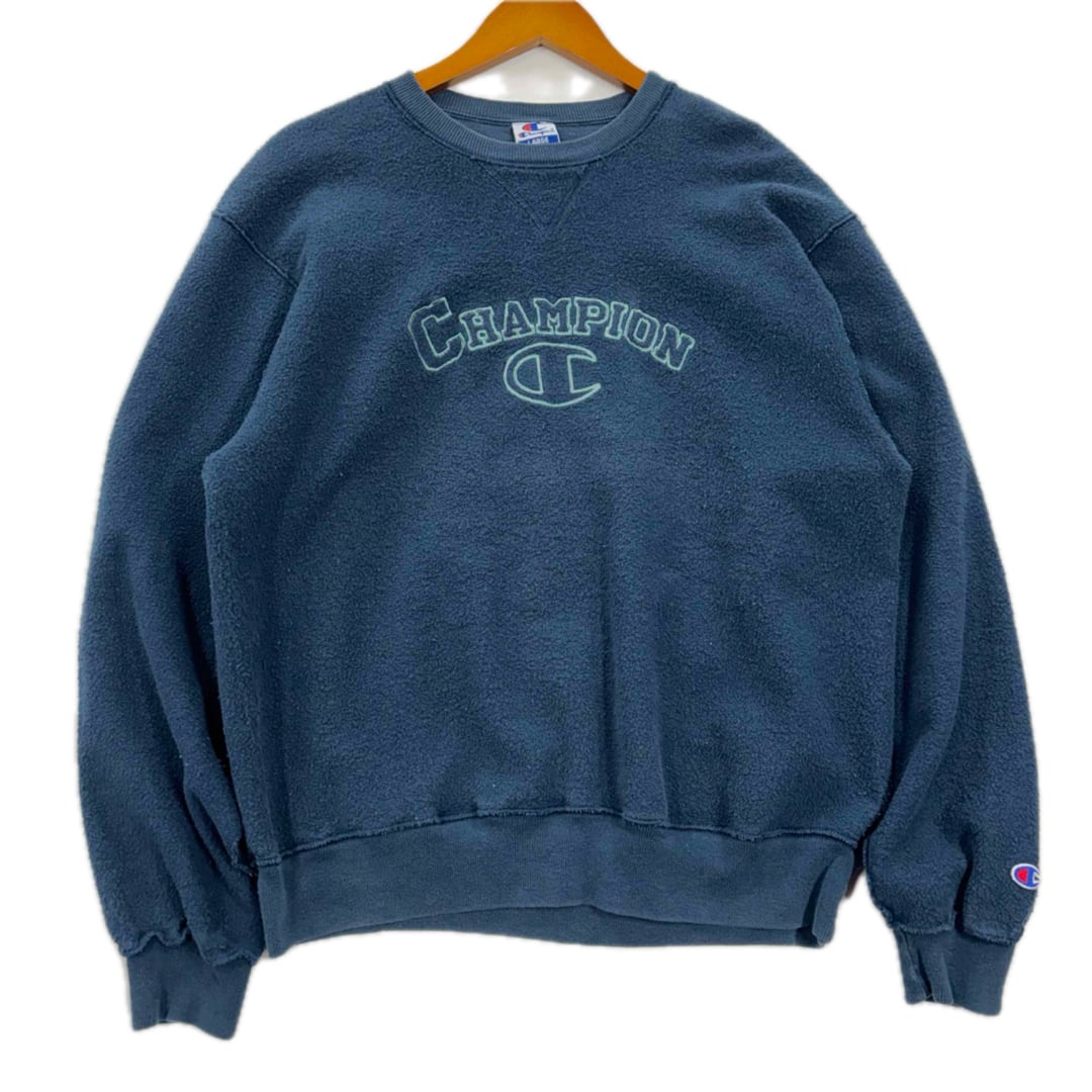 90s Champion 刺繍ロゴ ボア スウェット ネイビー メンズL