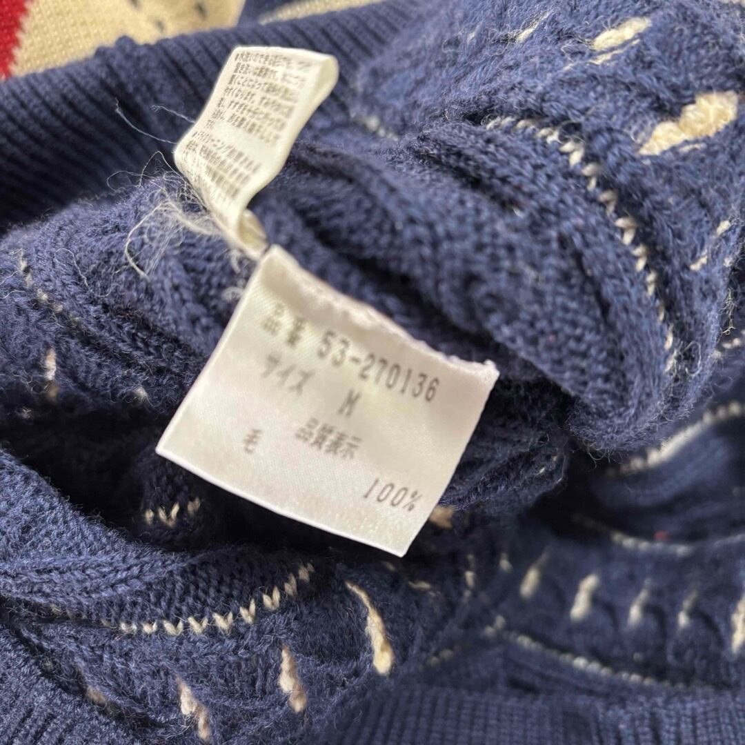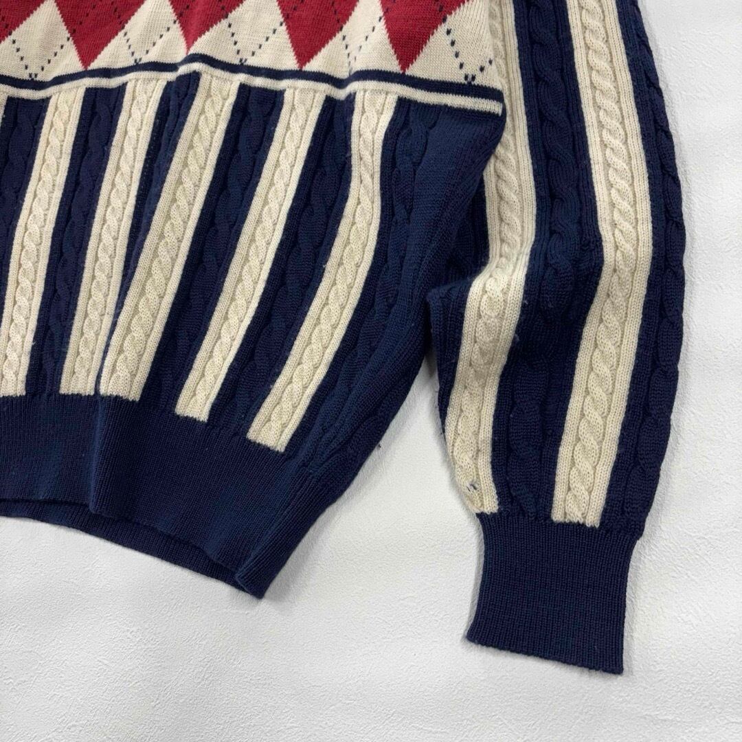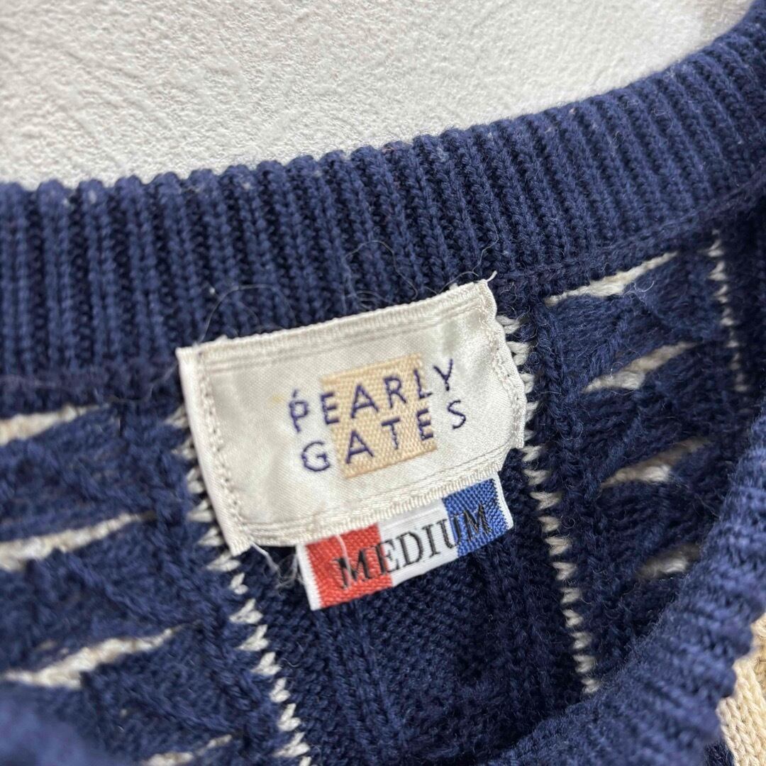 PEARLY GATES アーガイル切替 ケーブルニット ネイビー M ウール100%