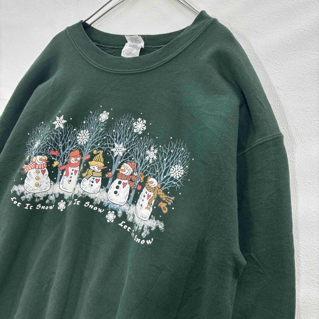 スノーマンプリント クリスマス スウェット トレーナー グリーン L