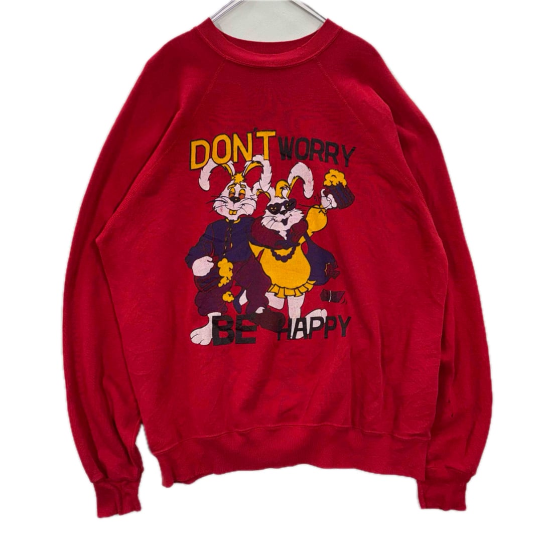 USA製 80s〜90s Tultex プリントスウェット レッド ラグラン L