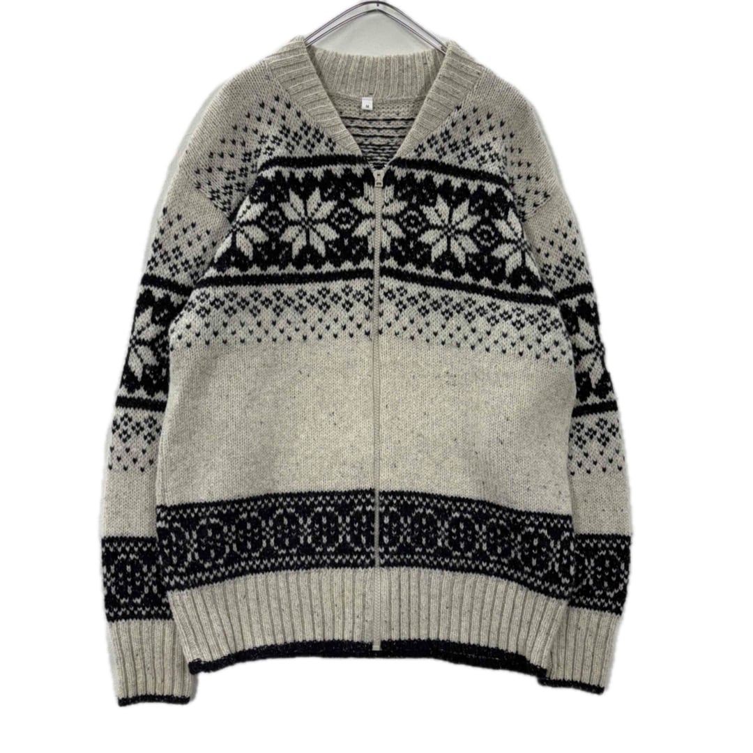 90s MADE IN UK ノルディック柄 ウールジップニット M メンズ