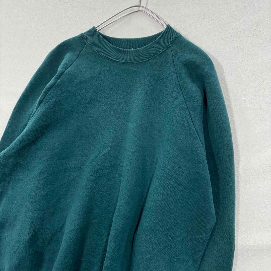 90s 無地 ラグランスウェット トレーナー ダークグリーン メンズL