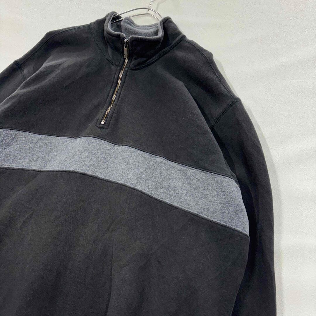 00s Eddie Bauer ハーフジップスウェット XL Tall ブラック×グレー メンズ
