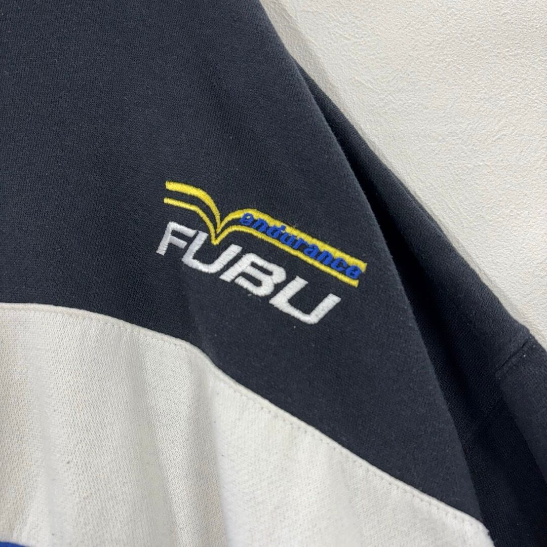 90s FUBU SPORT 刺繍 ハーフジップ 切替スウェット トレーナーXL