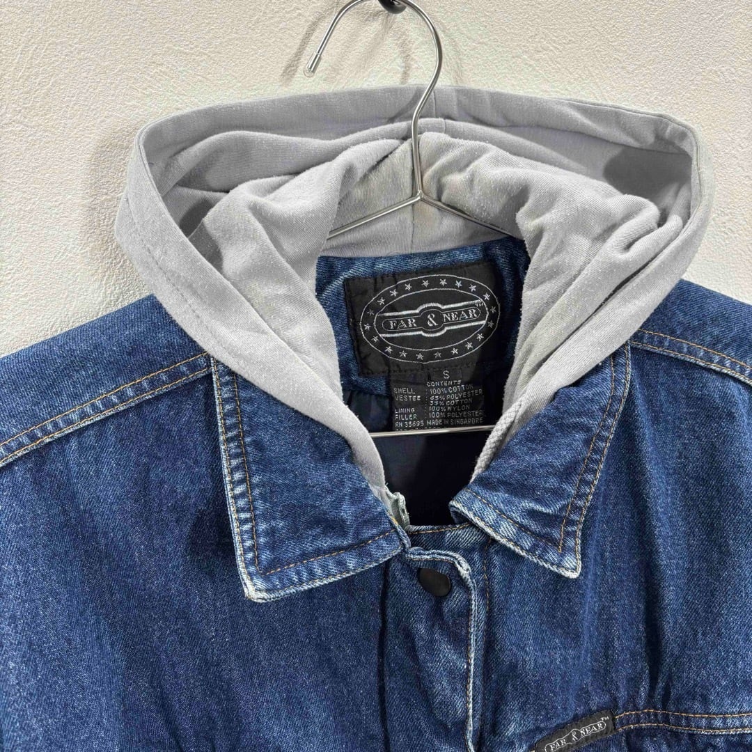 90s〜00s デニムジャケット フード付き 中綿入り レディースS相当