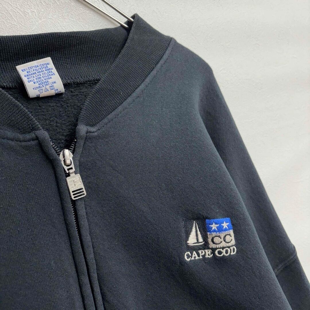 90s RUSSELL ATHLETIC フルジップスウェット CAPE COD刺繍 ブラック メキシコ製 メンズ2XL相当