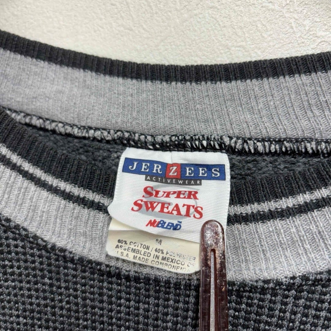 90s JERZEES ワッフルスウェット 刺繍ロゴ グレー メンズL相当