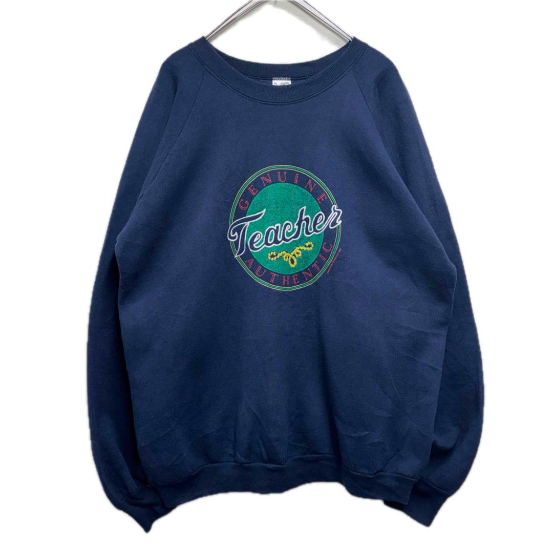 90s FRUIT OF THE LOOM USA製 Teacher プリントスウェット ネイビー メンズXL