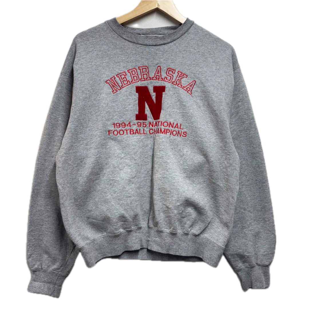 NEBRASKAのアーチロゴと「1994-95 NATIONAL FOOTBALL CHAMPIONS」の刺繍が入るカレッジデザインです。