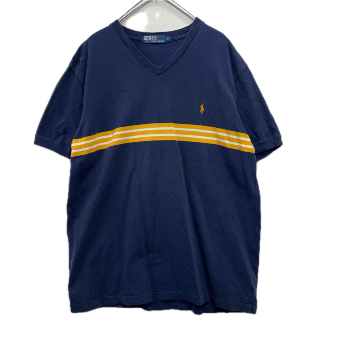 90s Polo Ralph Lauren ラインTシャツ ネイビー メンズL