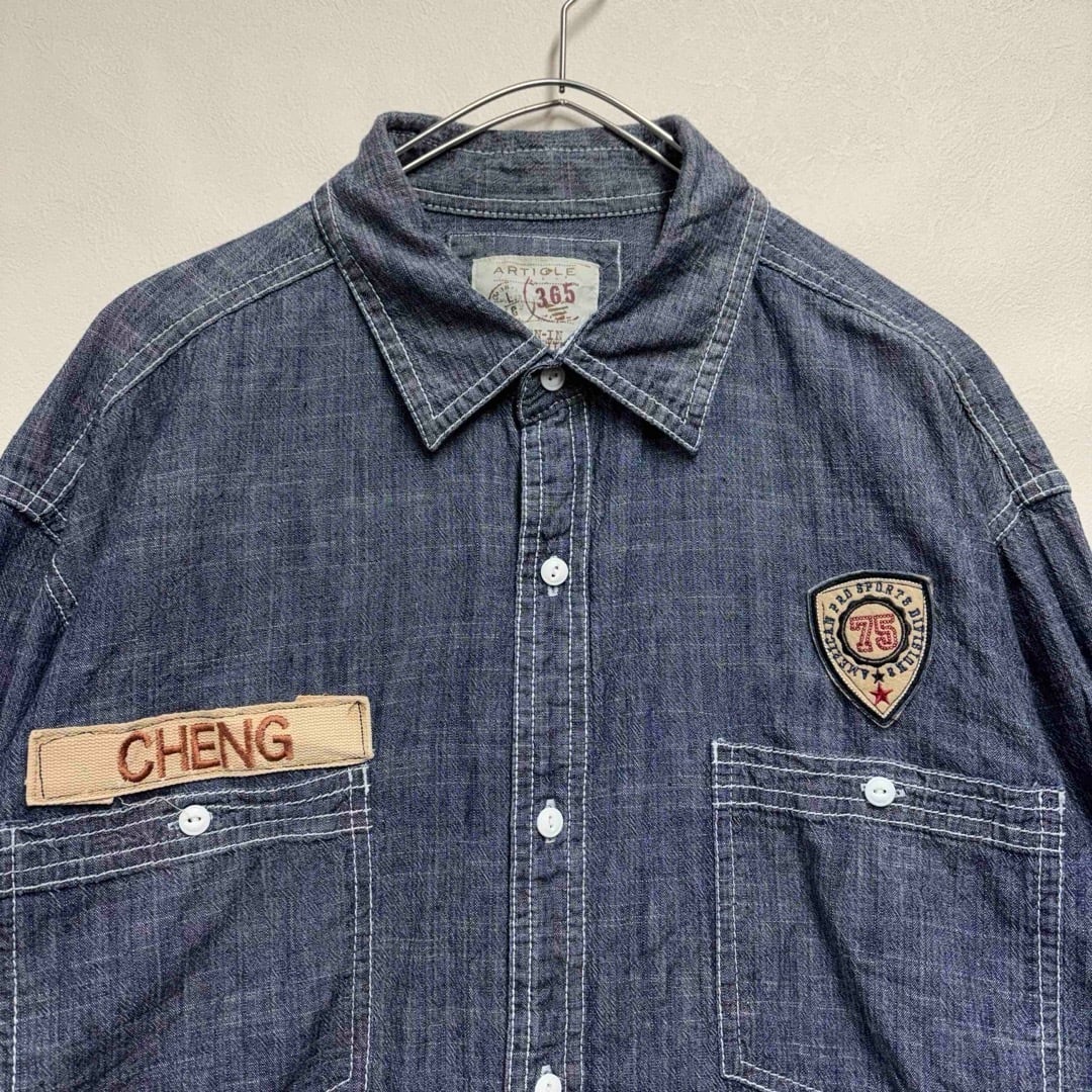 ワッペンリメイクシャンブレーシャツ メンズL 00s