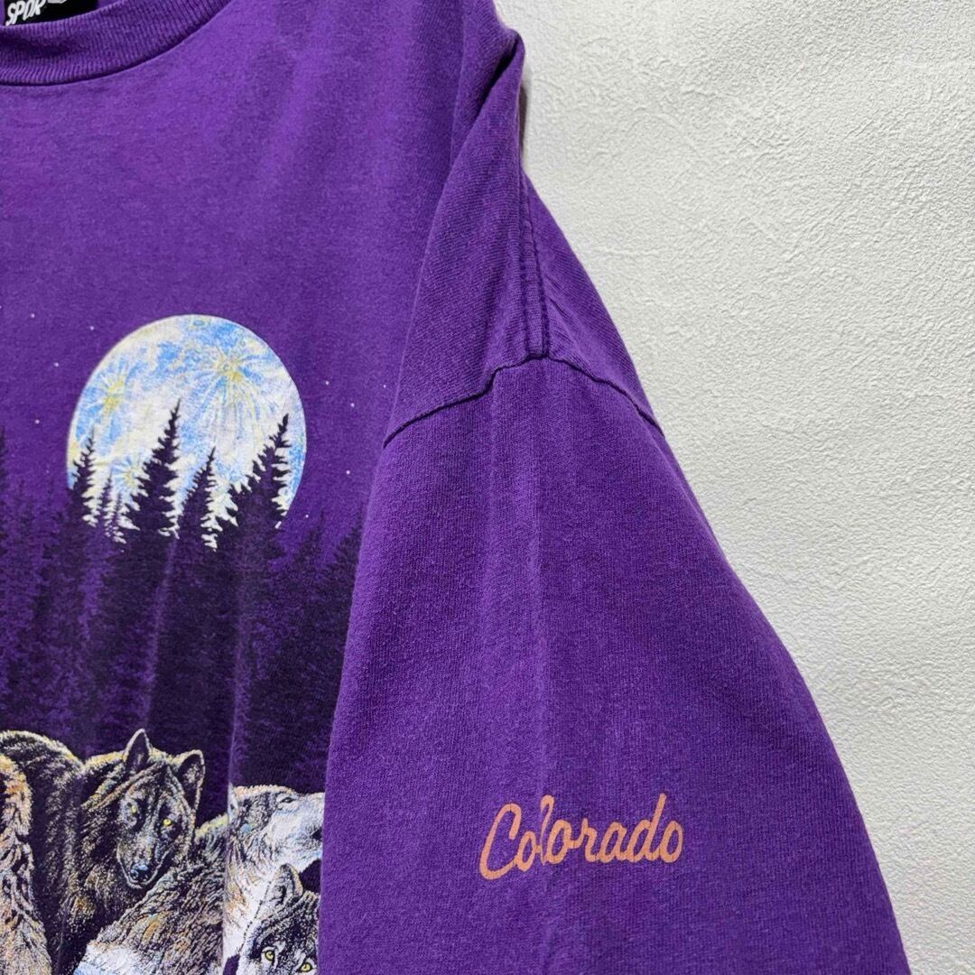 90s USA製 オオカミ 月夜プリントTシャツ メンズL