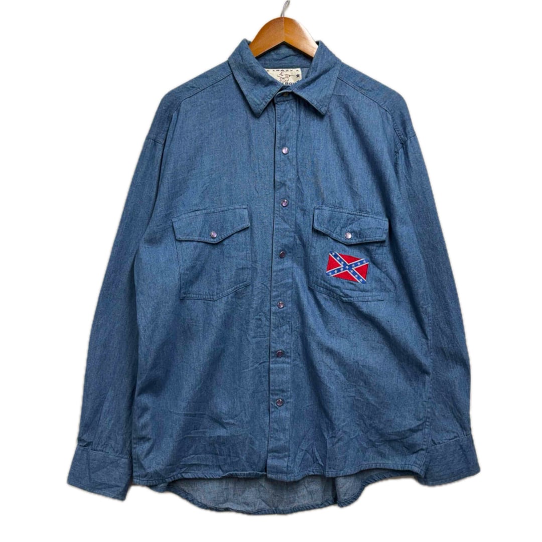 90s CRAZY COWBOY デニムシャツ 刺繍デザイン メンズL