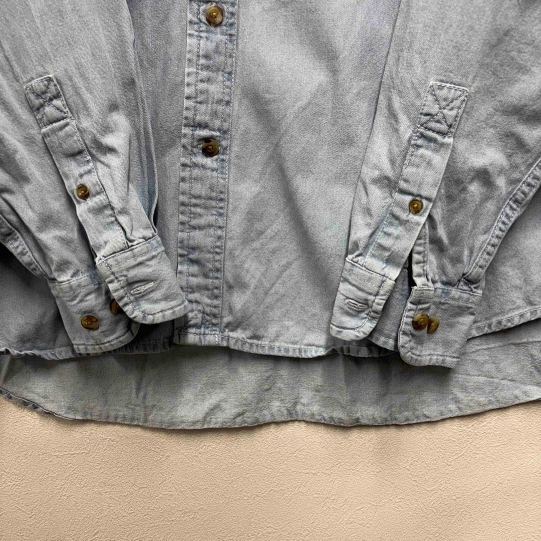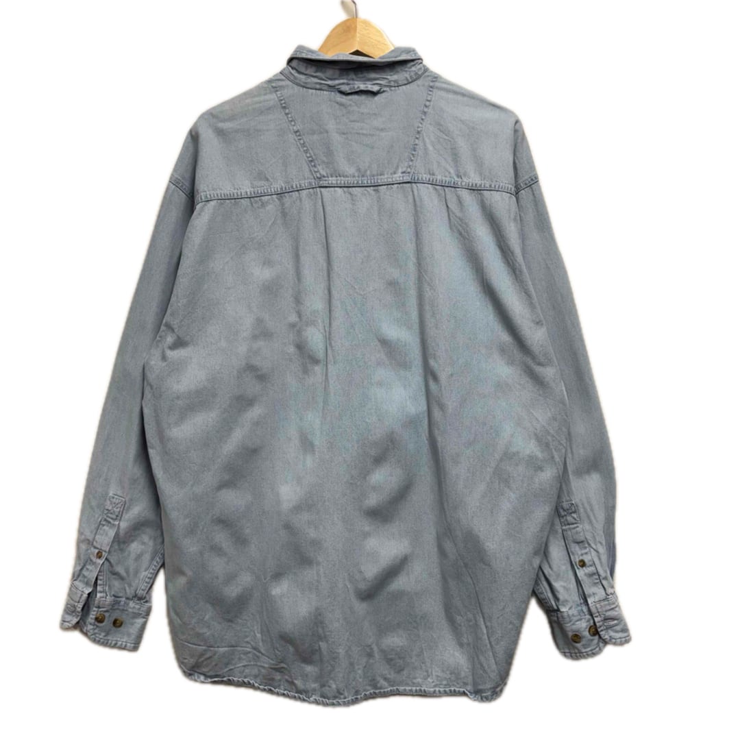 デニムシャツ 刺繍ロゴ ドルフィン 水色 メンズXL 90s