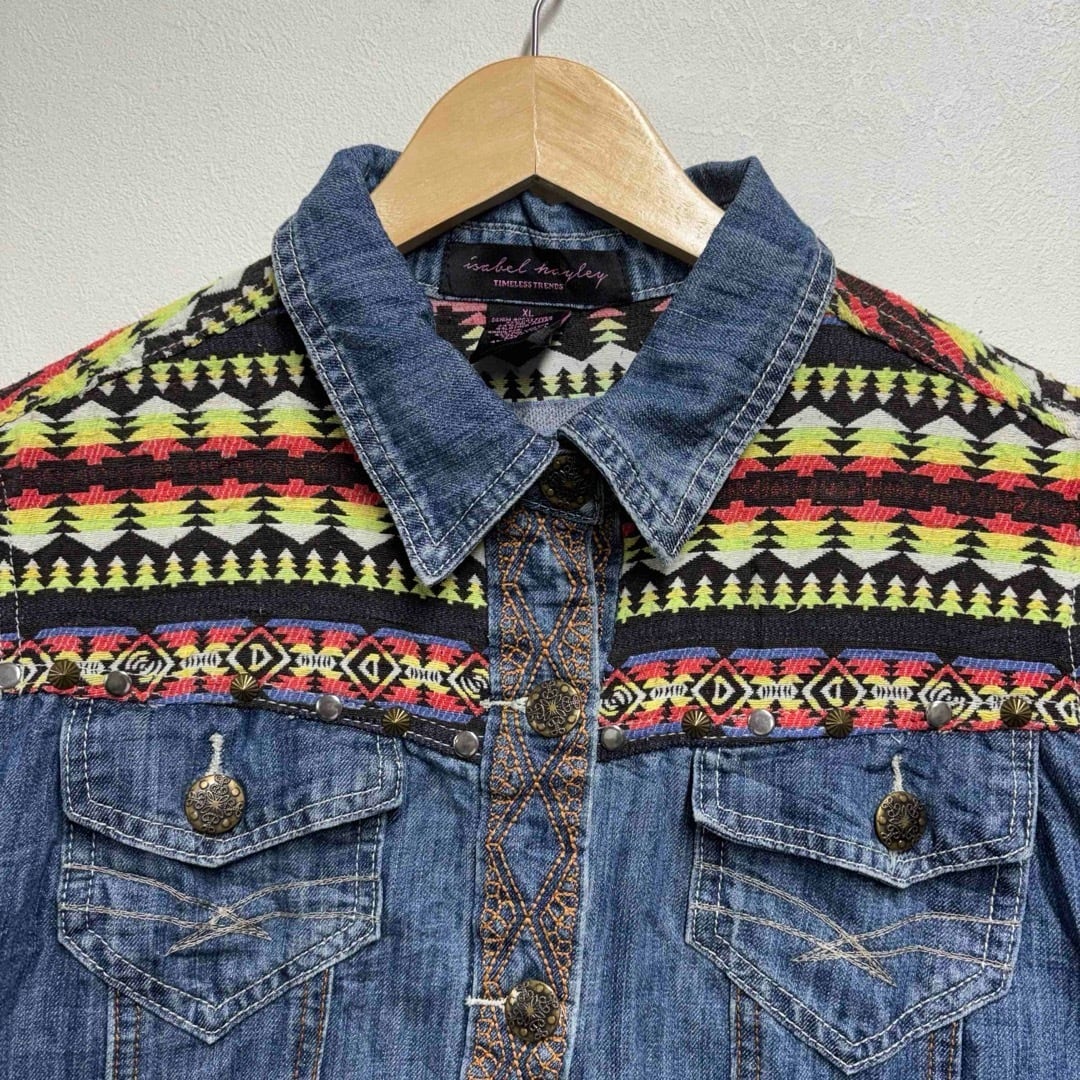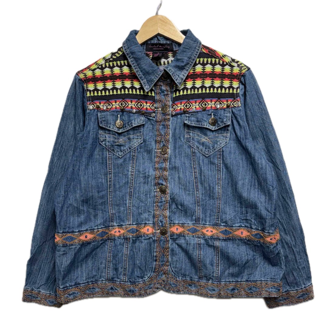 ネイティブ柄切替デニムジャケットレディースXL