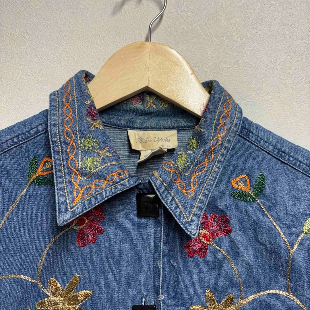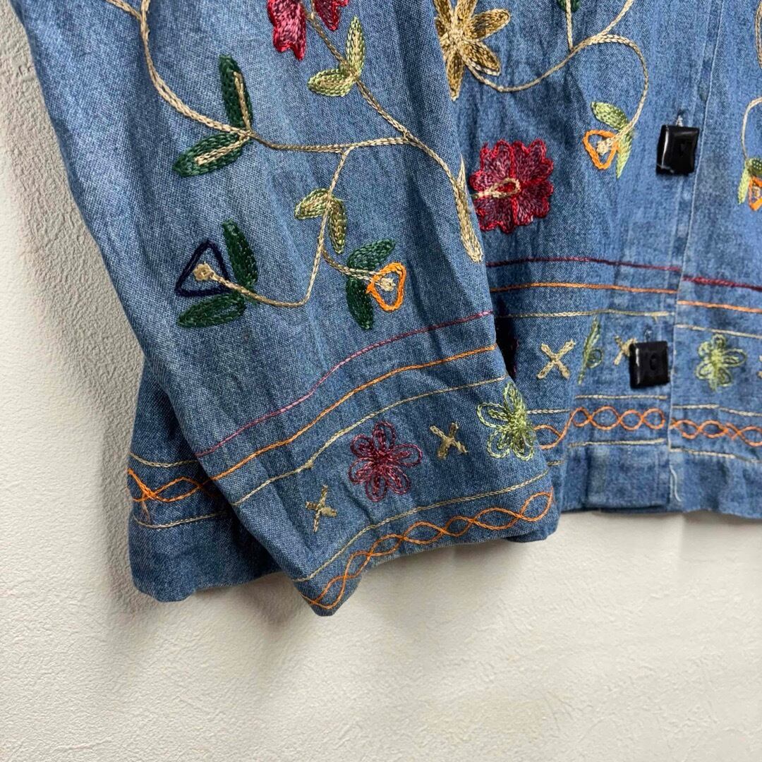 花柄刺繍デニムジャケット ショート丈 レディースM