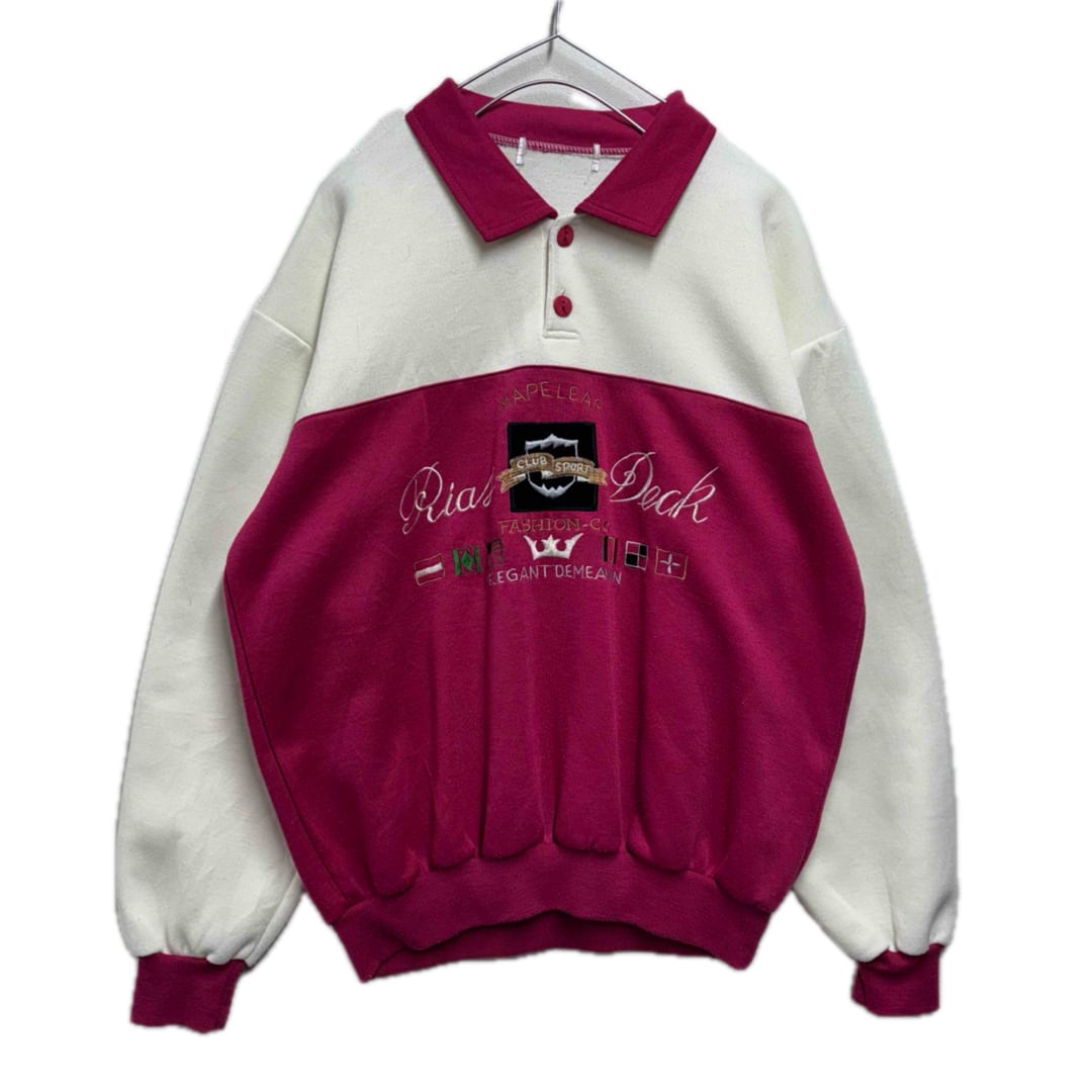 90s カラーブロック ポロスウェット 刺繍ロゴ レディースM相当