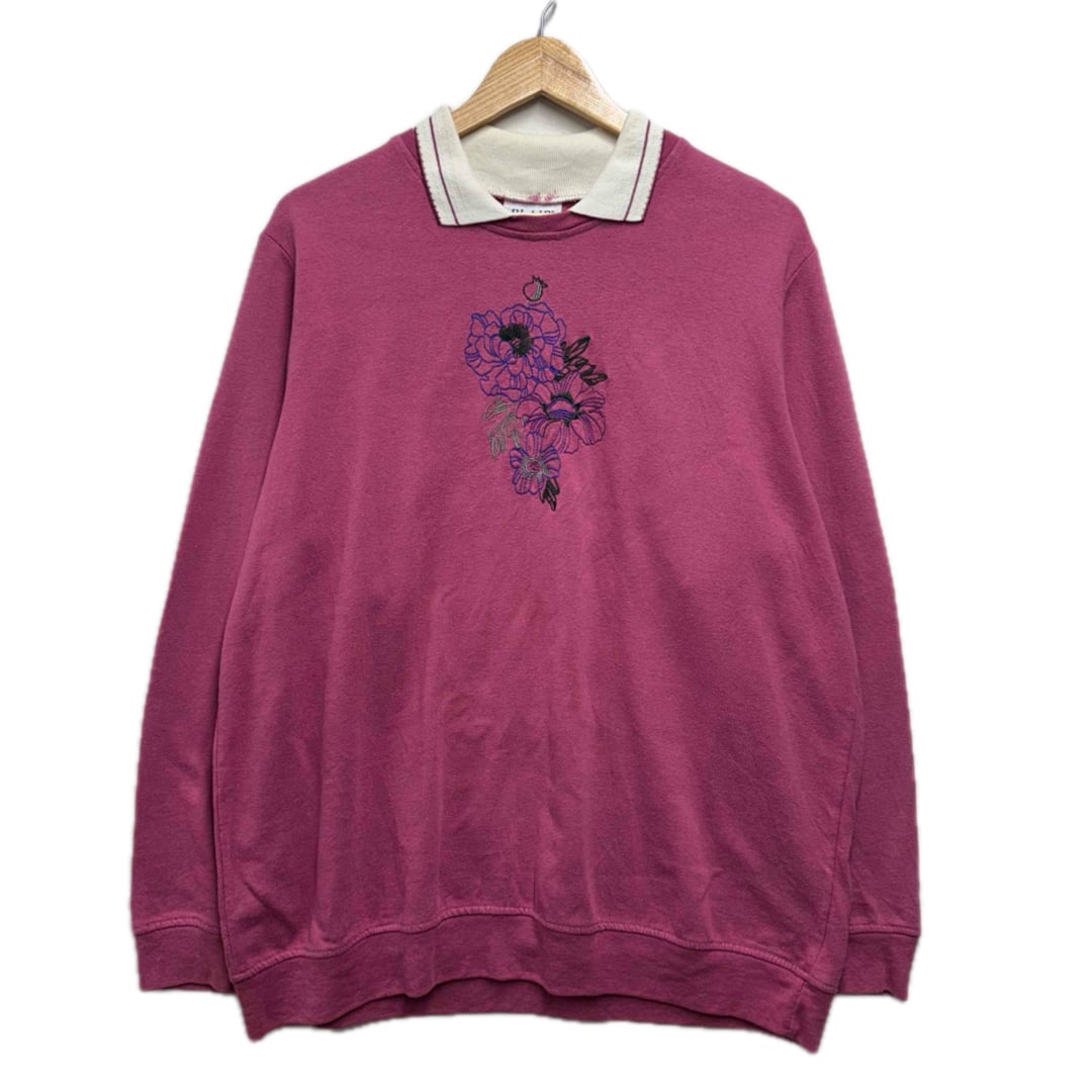 90s BLAIR 刺繍スウェット ピンク 花柄 レディースL