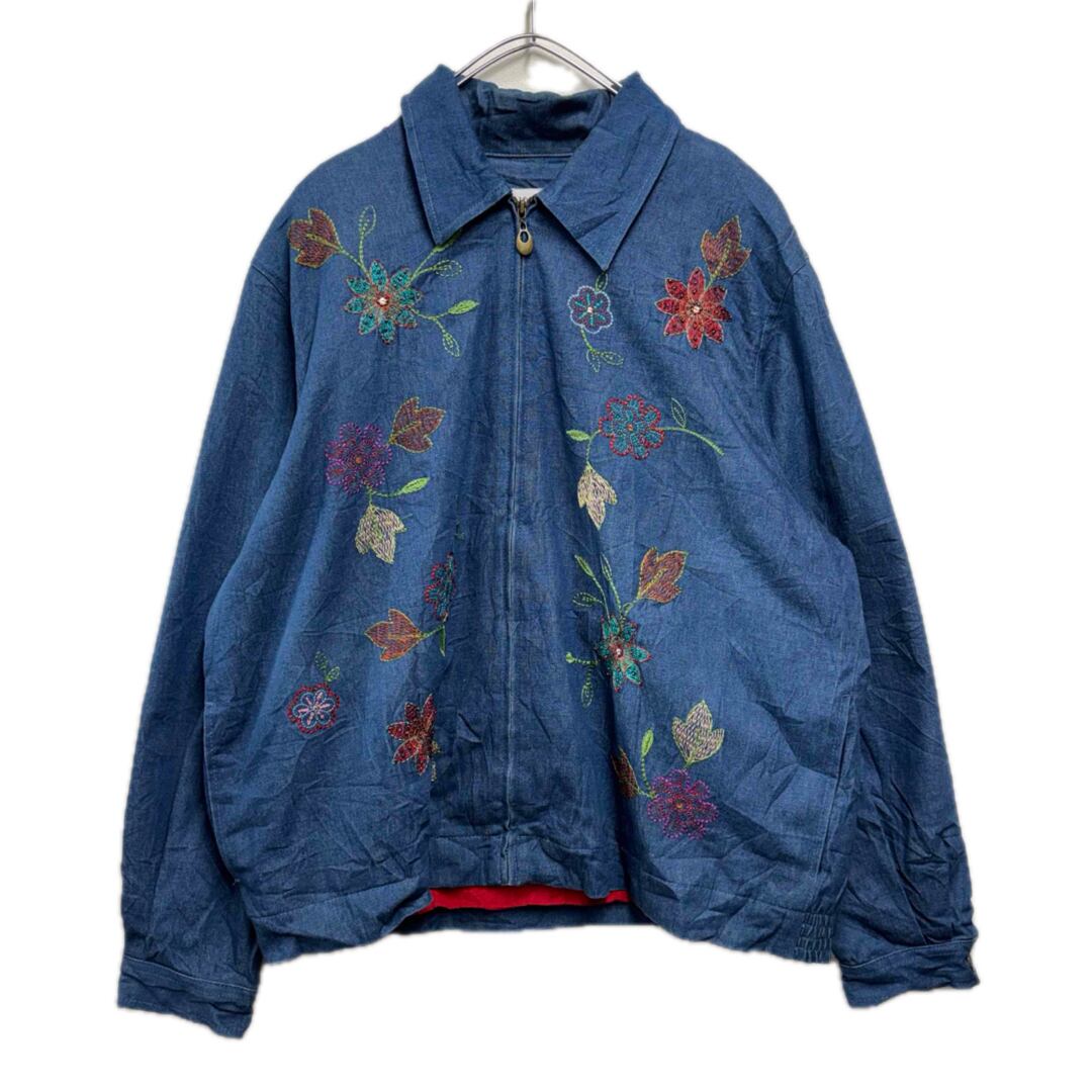 花刺繍デザインデニムジップジャケット レディースL