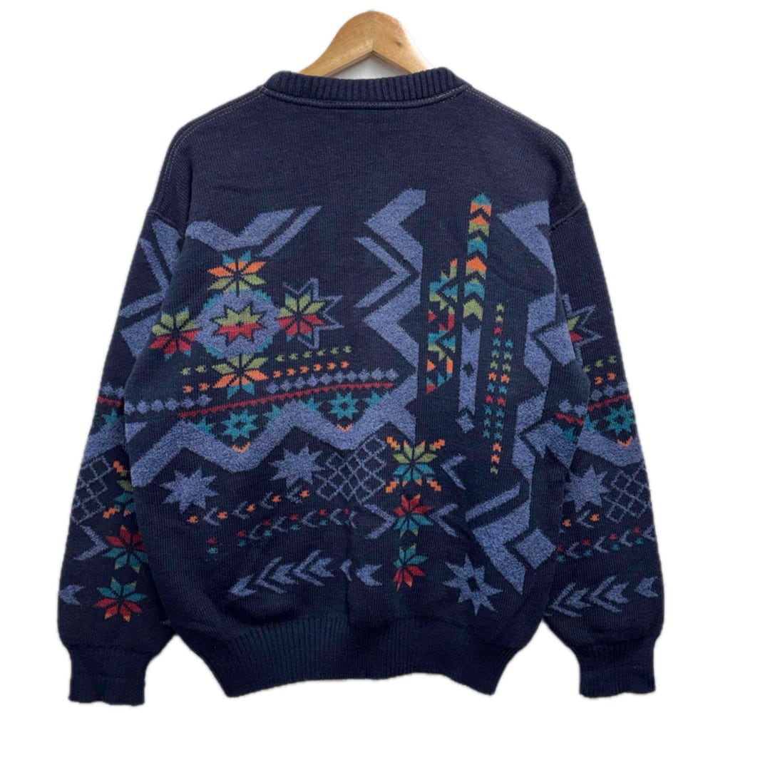 90s イタリア製 総柄デザインニット メンズL