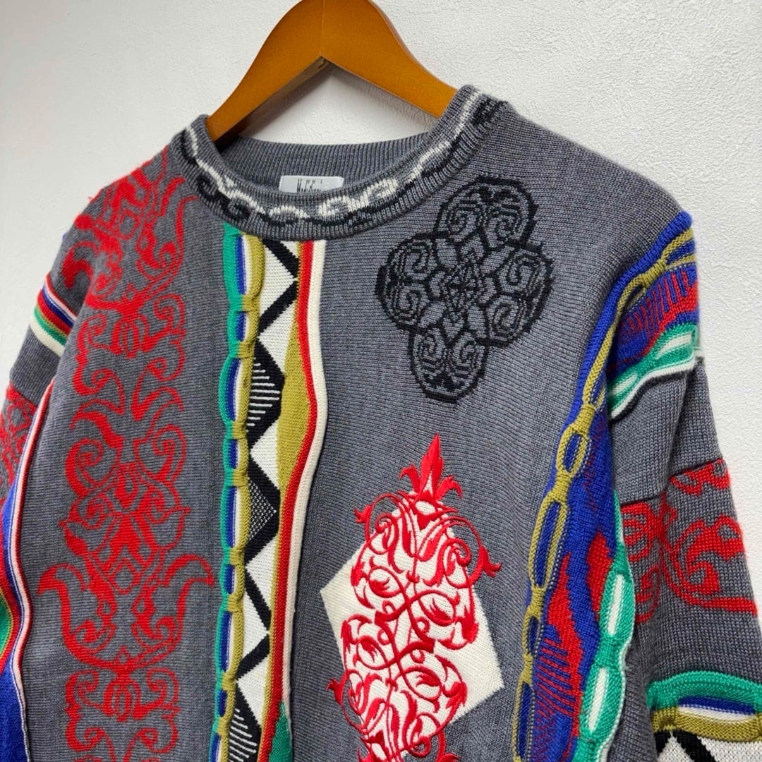 90s イタリア製 総柄ウールニット マルチカラー メンズM