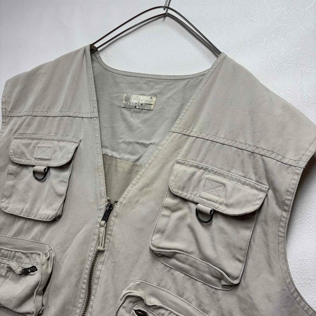 90s フィッシングベスト 多ポケット ベージュ メンズL
