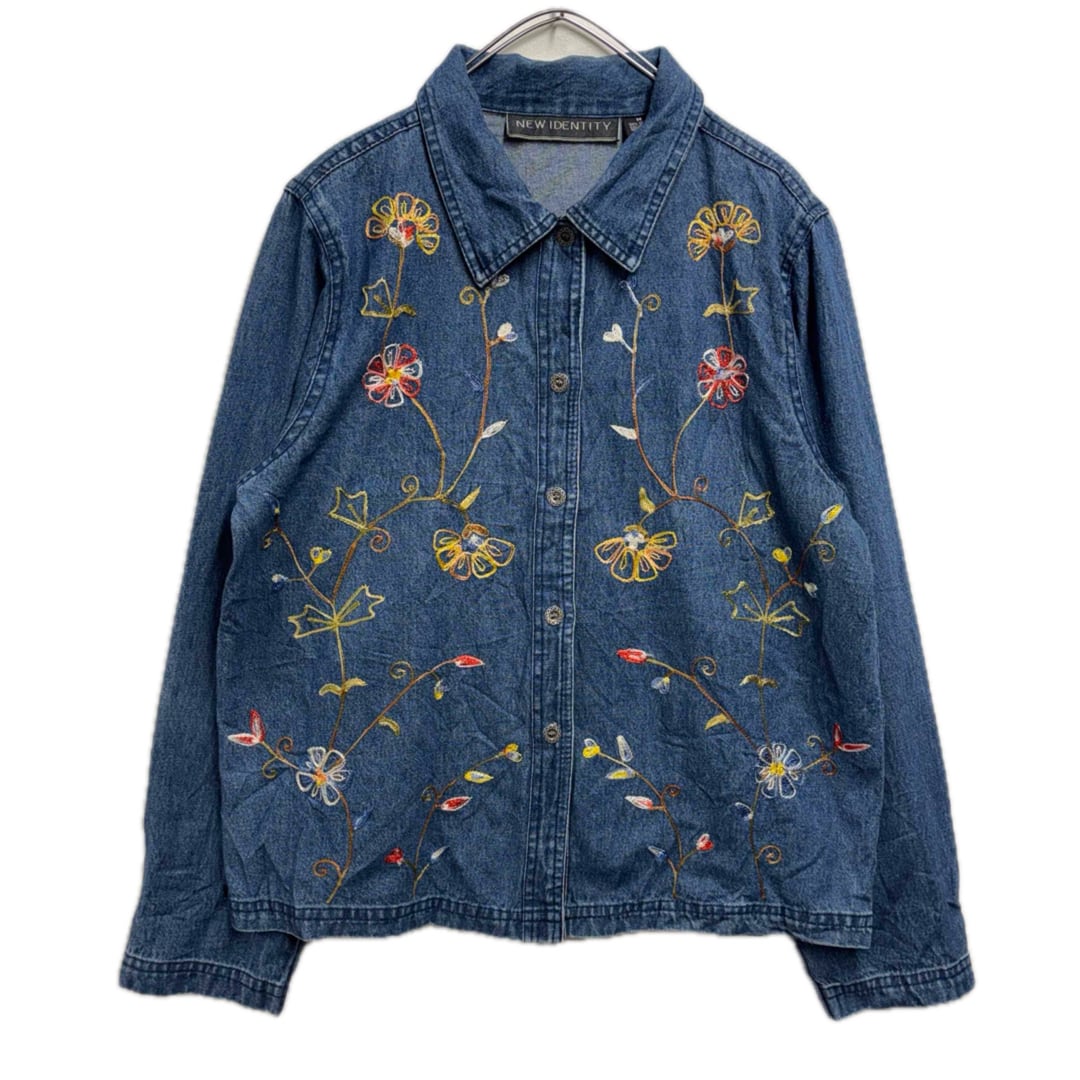 90s 刺繍デザイン デニムシャツ 花柄 レディースM ヴィンテージ