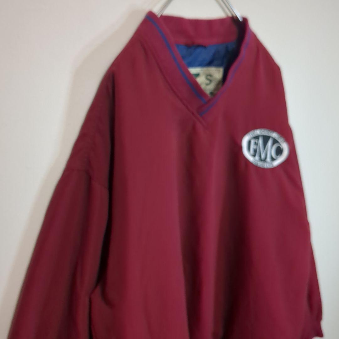 プルオーバーナイロンジャケットFMC企業ロゴVネックブルゾン赤 メンズS a17