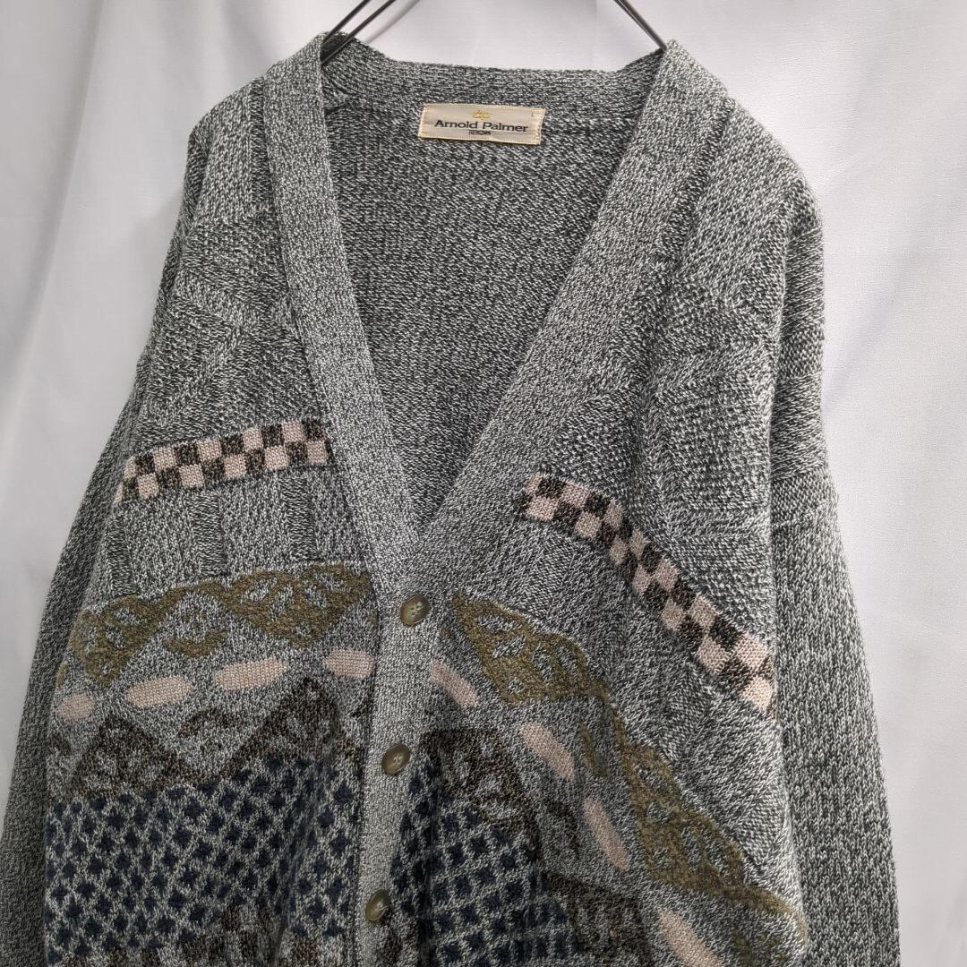 アーノルドパーマー ノルディック ニットカーディガングレーL b24