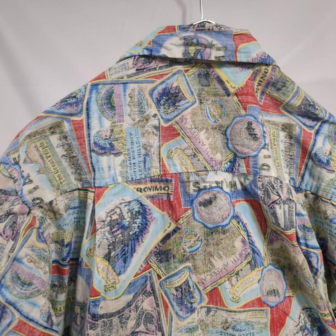 ヴィンテージシャツ/柄シャツ半袖水色赤メンズM b13
