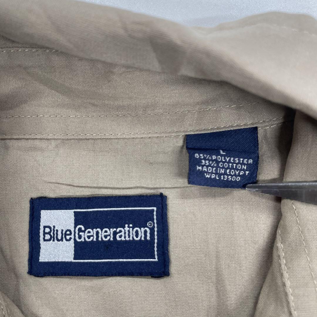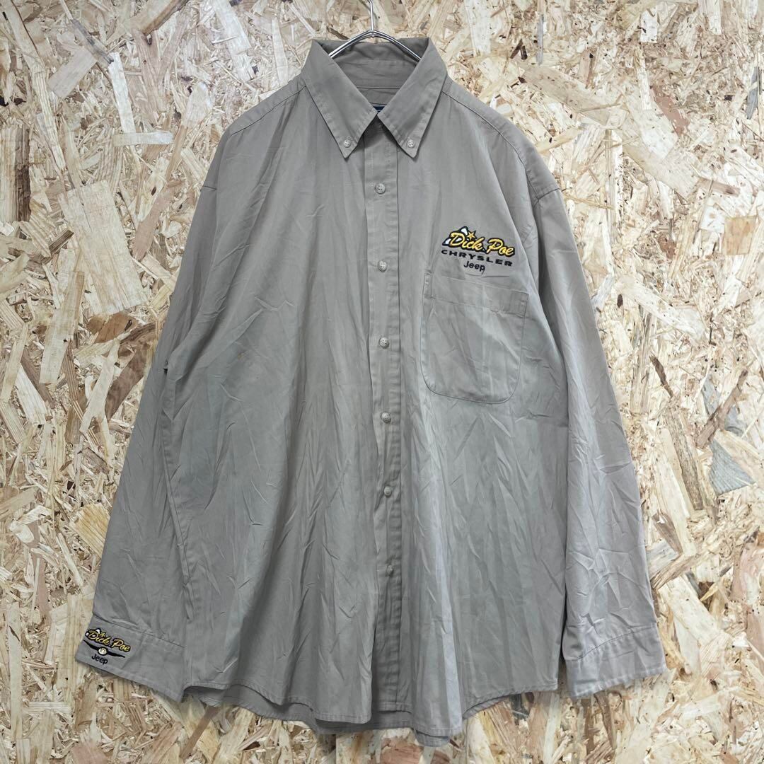 ワーク長袖シャツ ロゴ刺繍 ベージュ メンズL e3