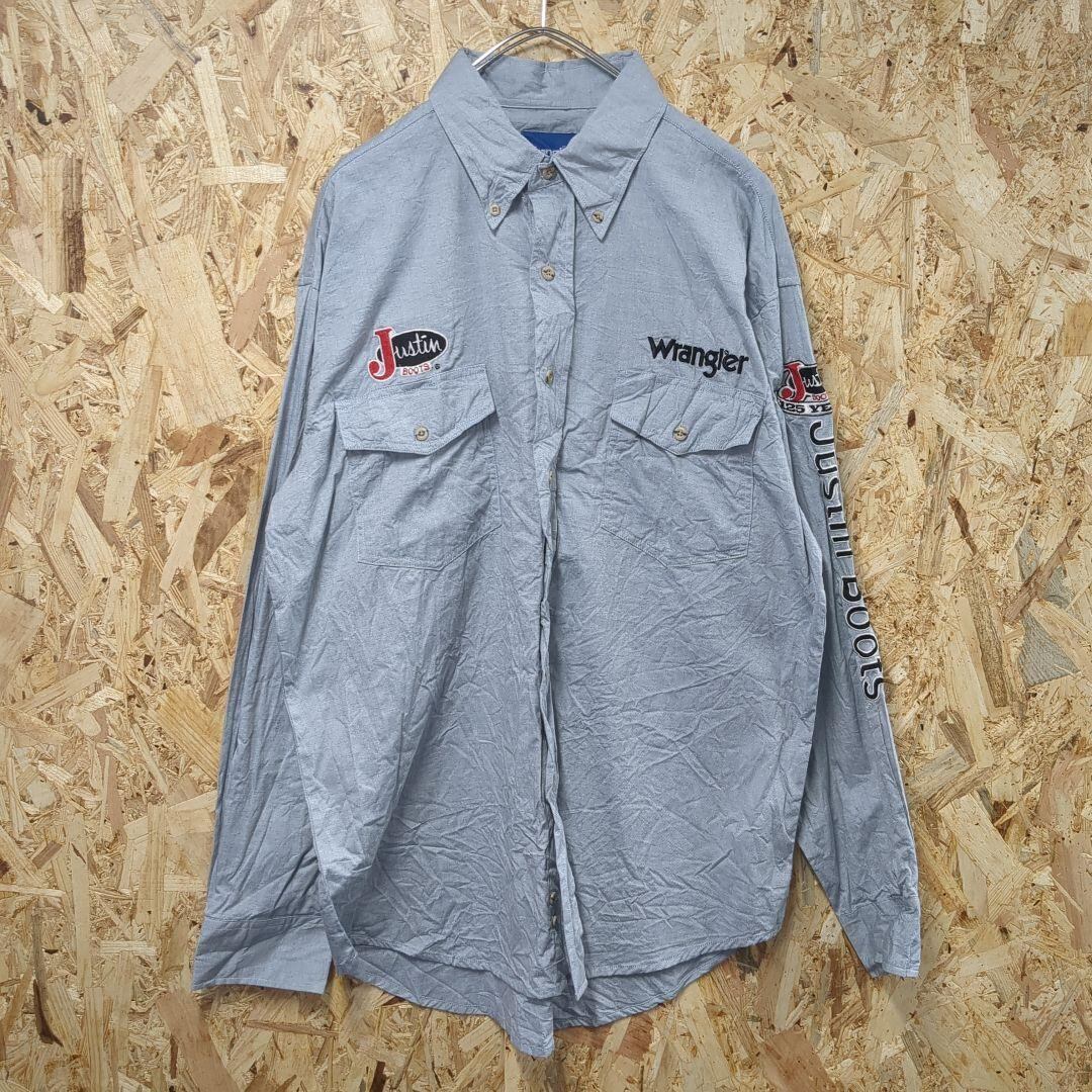 Wrangler ジャスティンブーツ ワークシャツ 企業ロゴ刺繍 Lグレー e4