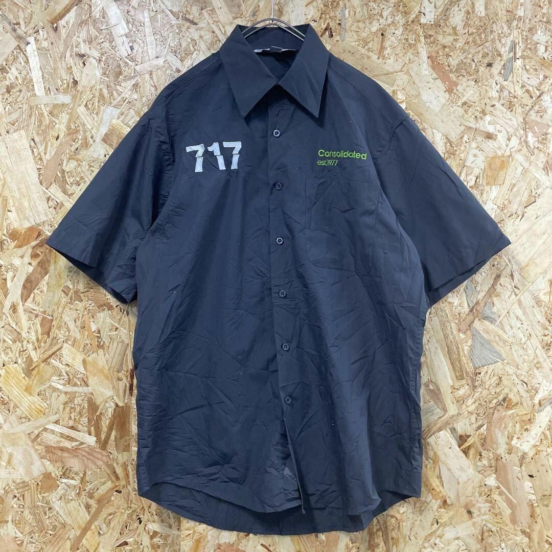 ワークシャツ 企業ロゴ 半袖 メンズM ダークグレー e4