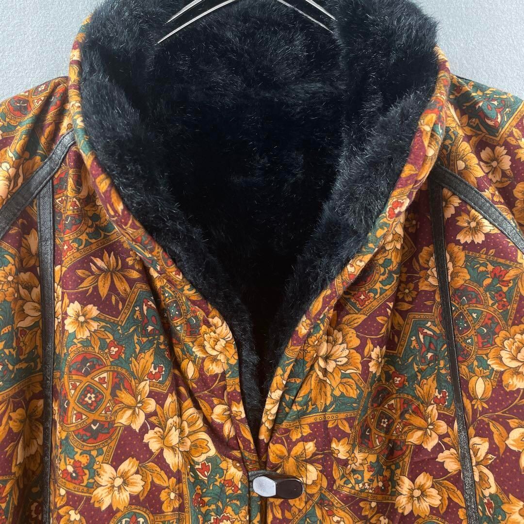 花柄レトロ チャイナジャケット ファー レディースL相当 茶