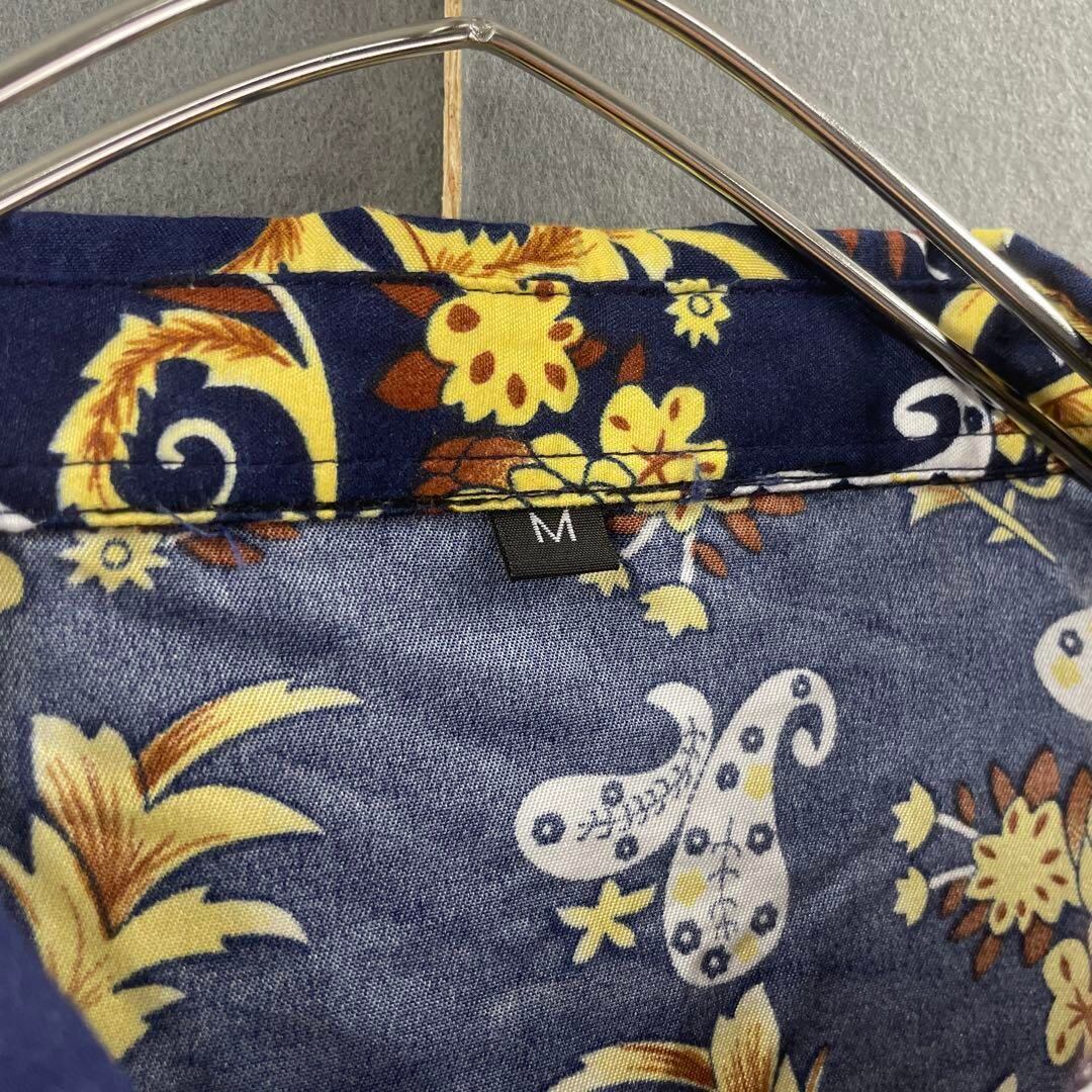 ヨーロピアン ペイズリー柄 長袖シャツ メンズM 紺