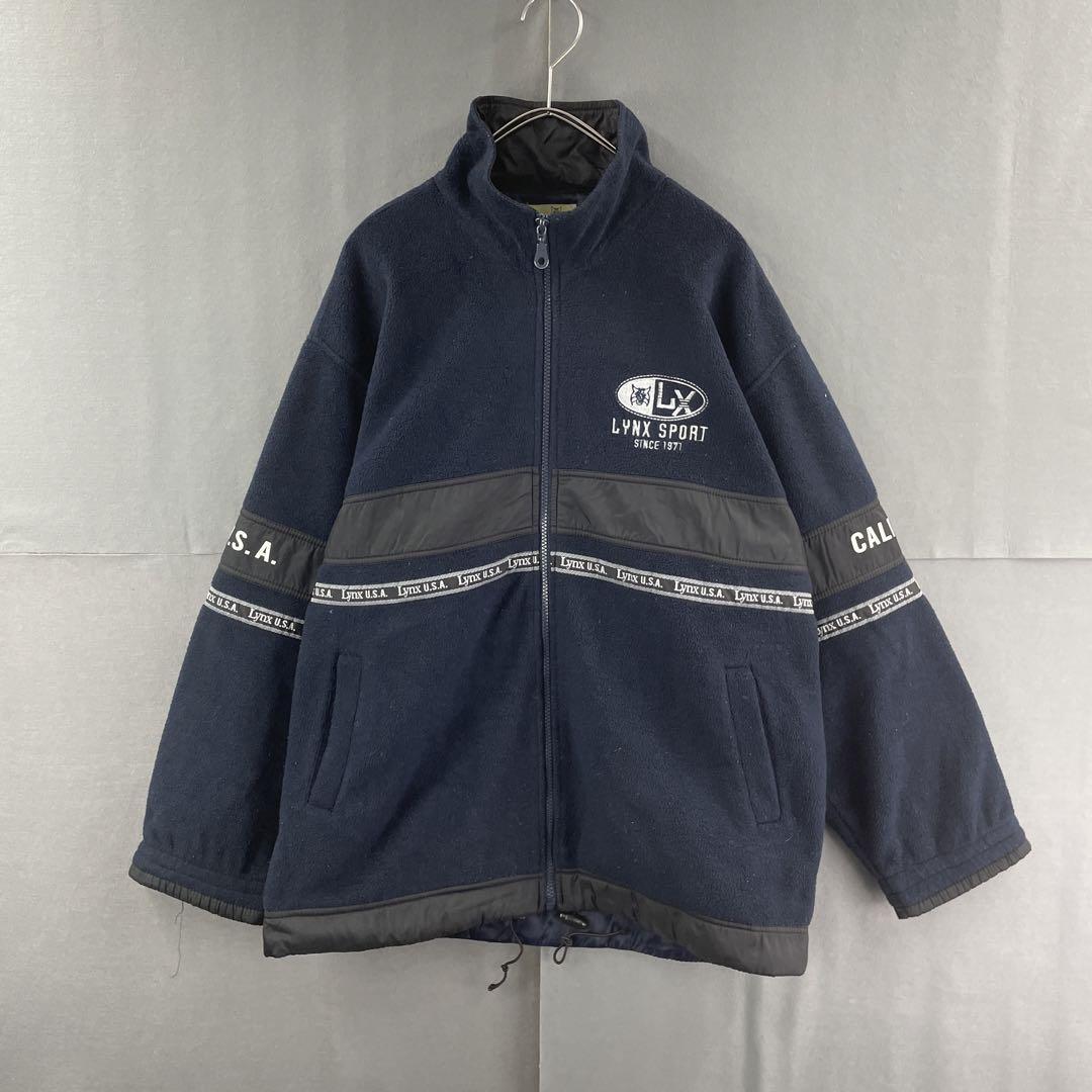 LYNX SPORT ボアフリースジャケット ドローコード付 メンズM 紺